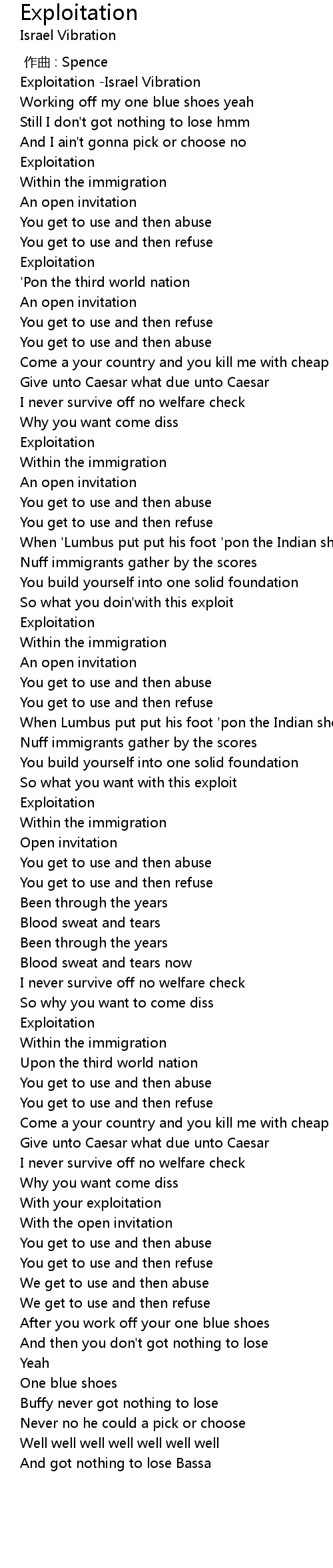 | [03:27.805] | Come a your country and you kill me with cheap labour |