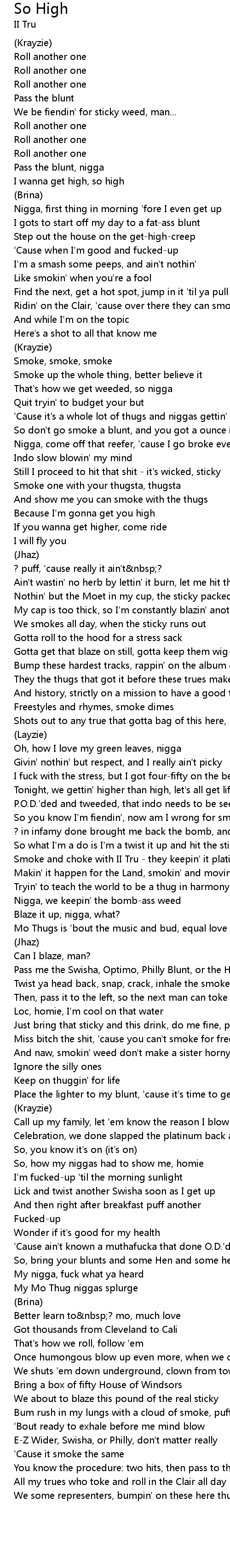 My cap is too thick, so I'm constantly blazin' another blunt up