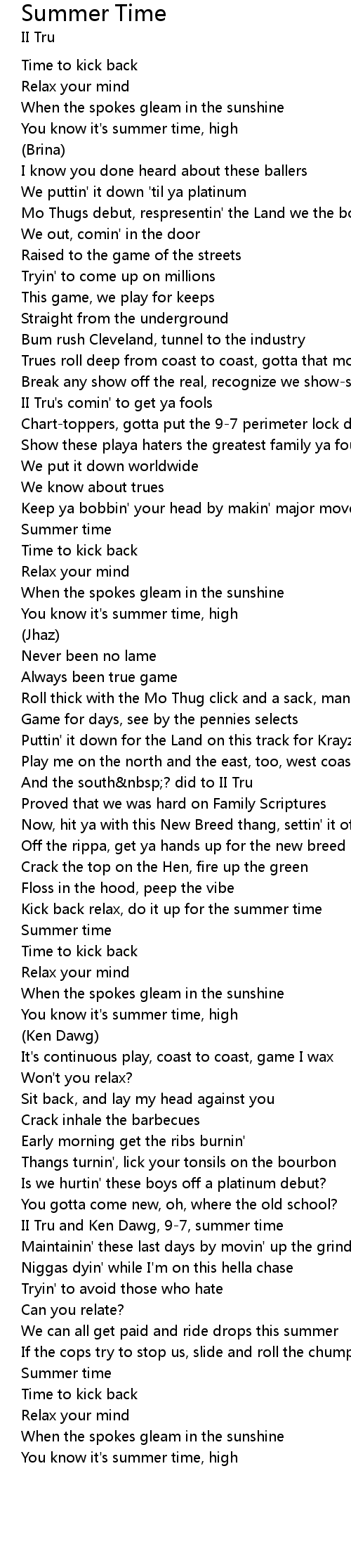 | II Tru and Ken Dawg, 9-7, summer time | |
