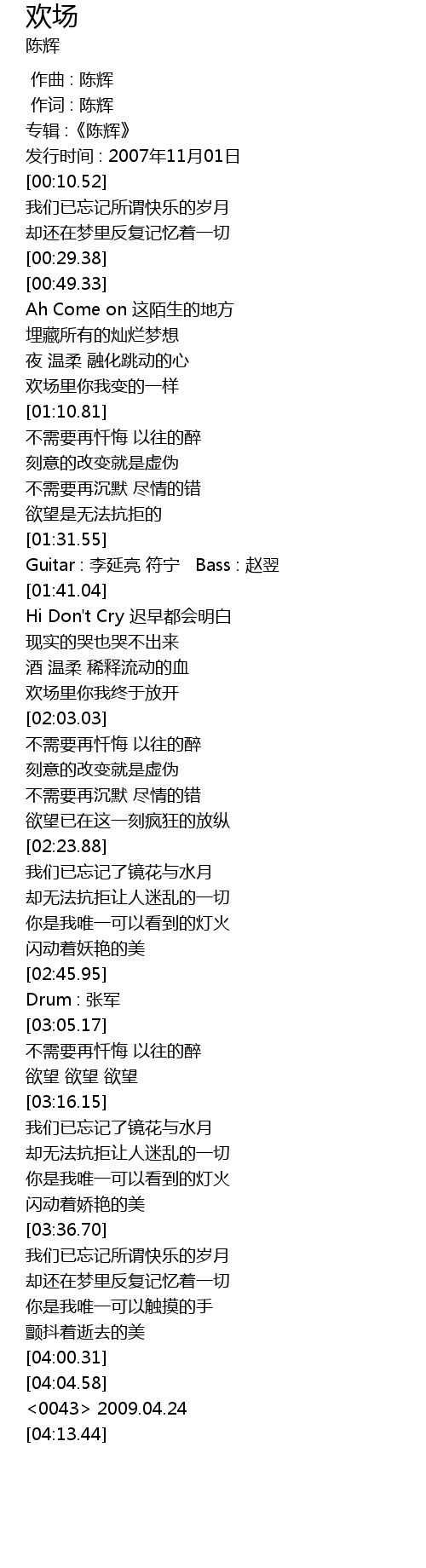 | [00:06.67] | 专辑 :《陈辉》 |