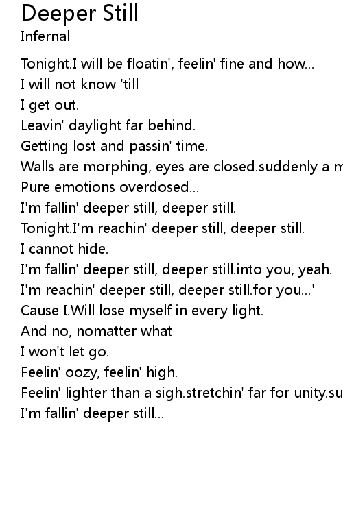 I'm fallin' deeper still, deeper still. |