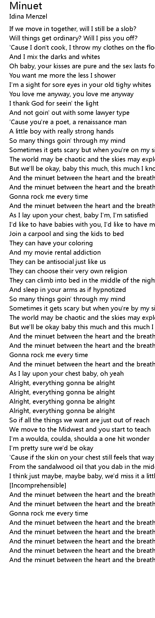 And the minuet between the heart and the breath, I'm satisfied |