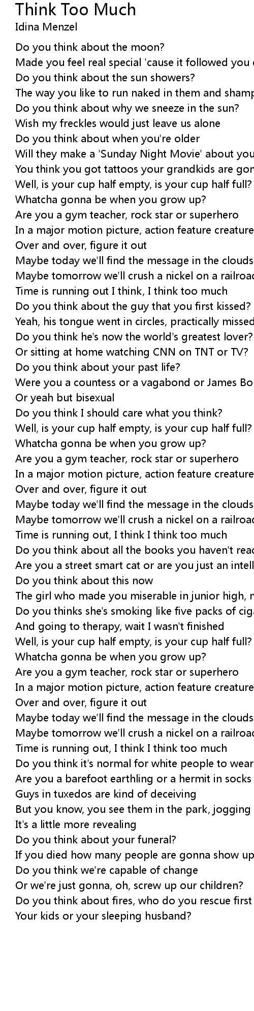 Time is running out, I think I think too much |