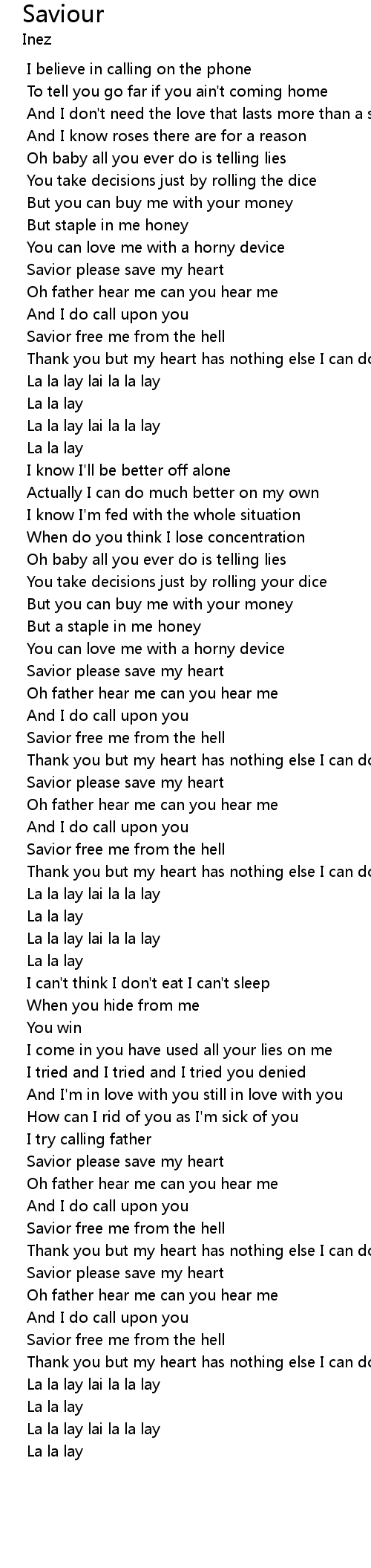 Savior free me from the hell |