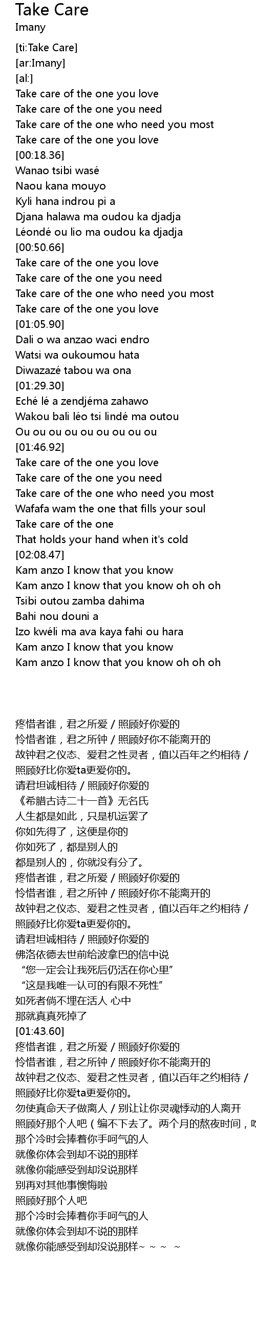 | [ti:Take Care] | |