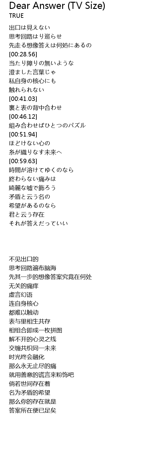 | 歌曲 | Dear Answer (TV Size) |