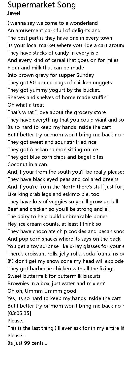 | [00:48.64] | That's what I love about the grocery store |