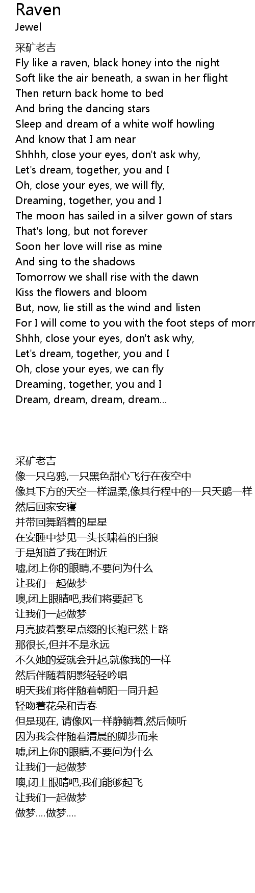 | [00:16.73] | Fly like a raven, black honey into the night |