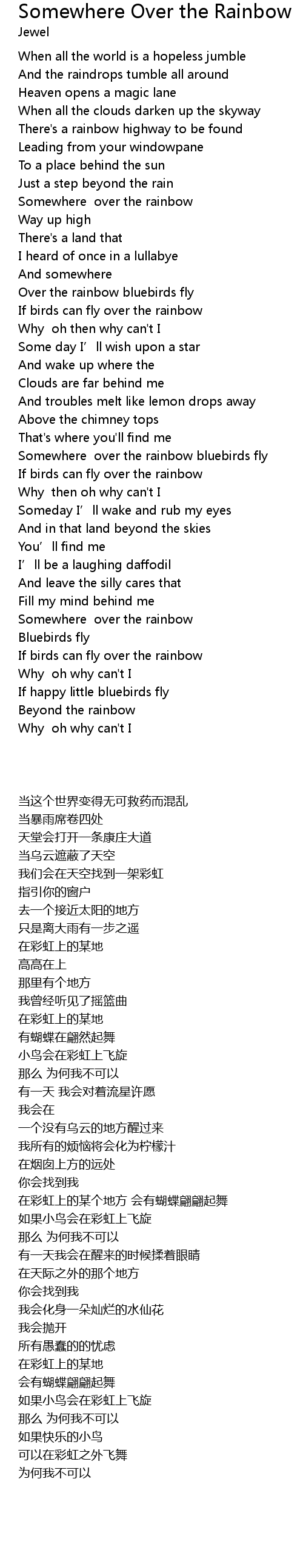 | [03:22.79] | Somewhere over the rainbow |