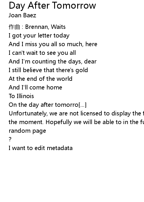 | 歌曲 | Day After Tomorrow |