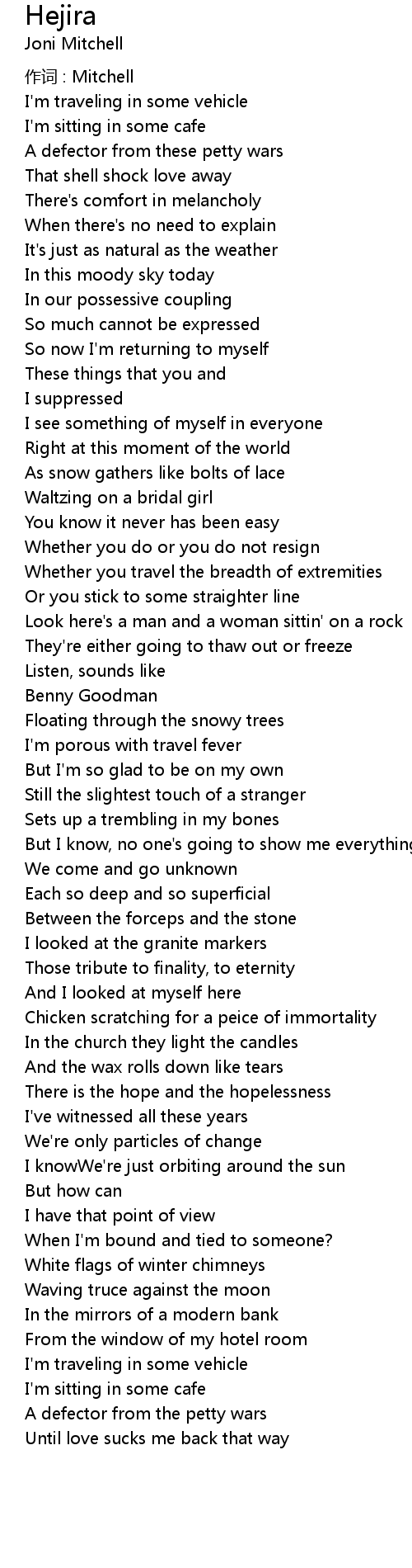 | 歌曲 | Hejira |