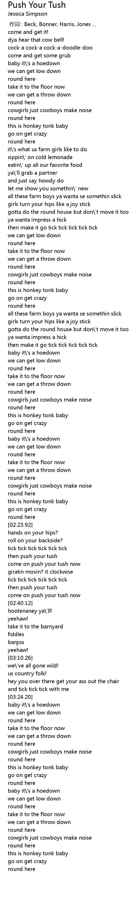 | [02:38.89] | come on push your tush now |