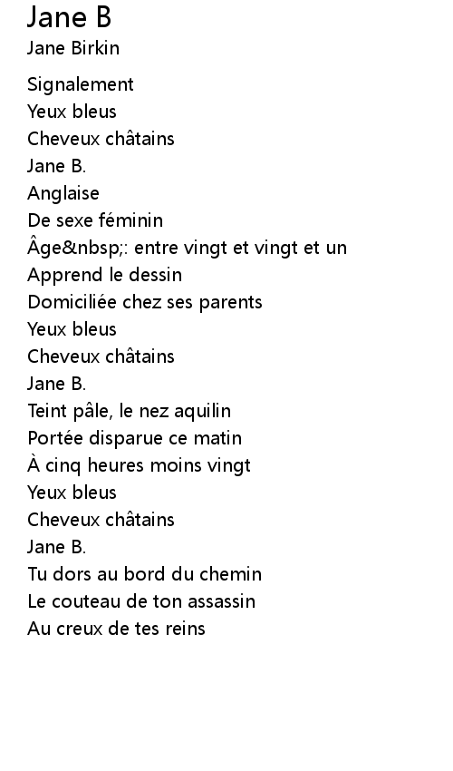 | 歌手 | Jane Birkin |