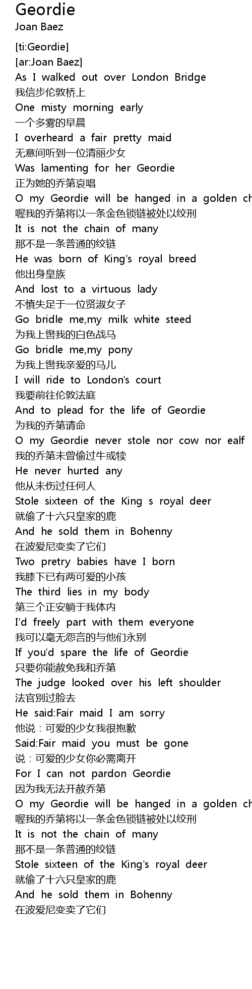 | [00:37.30] | O my Geordie will be hanged in a golden chain |