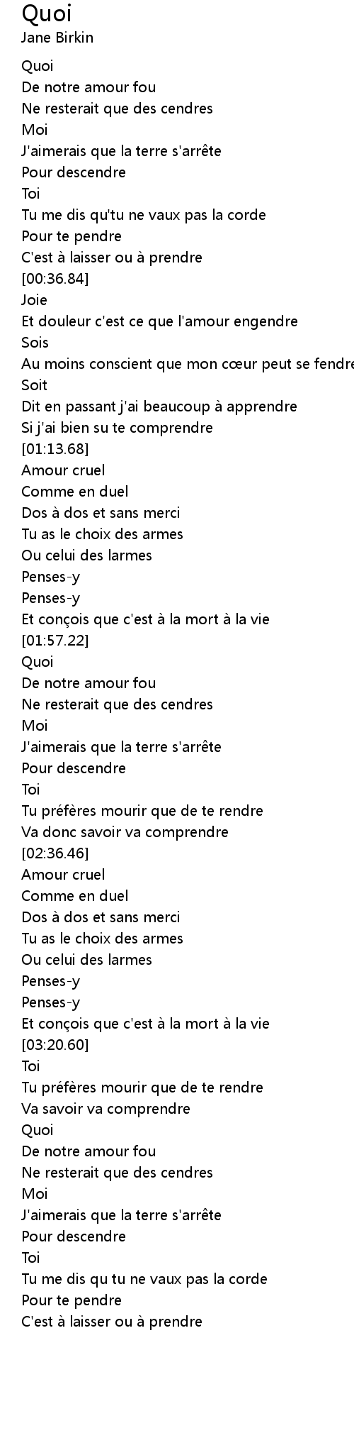 | [01:50.25] | Et conçois que c'est à la mort à la vie |