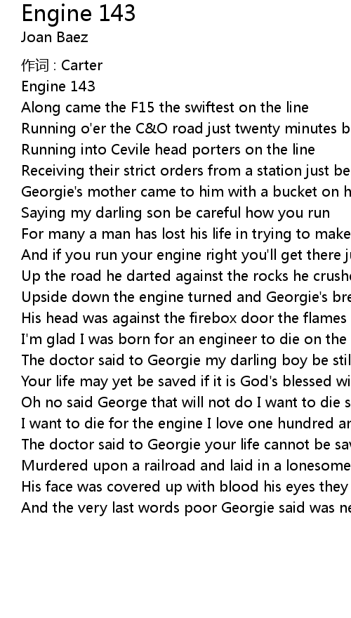 | I' m glad I was born for an engineer to die on the C O road | |