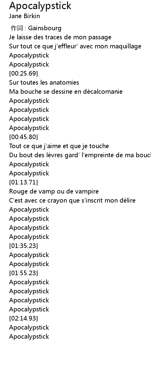 | [00:43.80] | Apocalypstick |