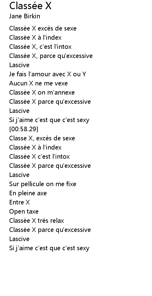 | [00:18.87] | Classée X, c'est l'intox |