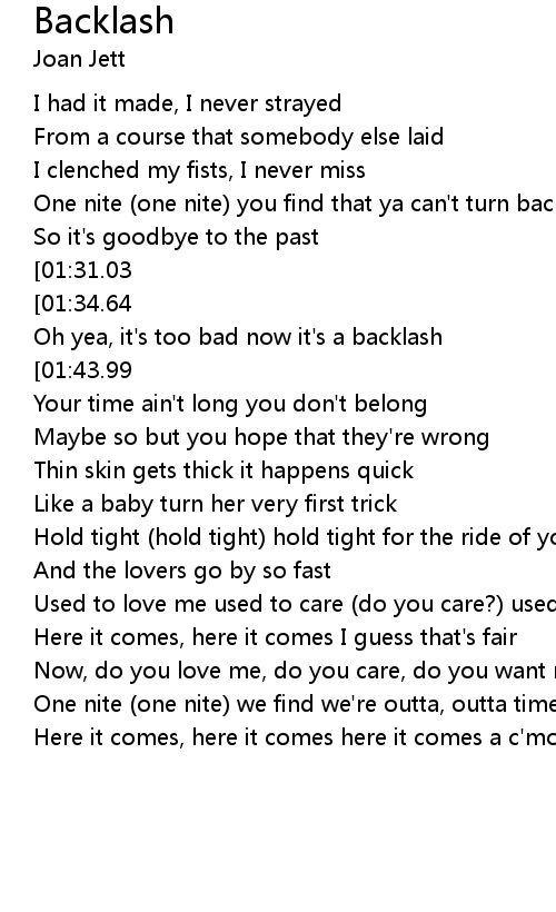 | [00:57.88] | Oh yea, it's too bad now it's a backlash |