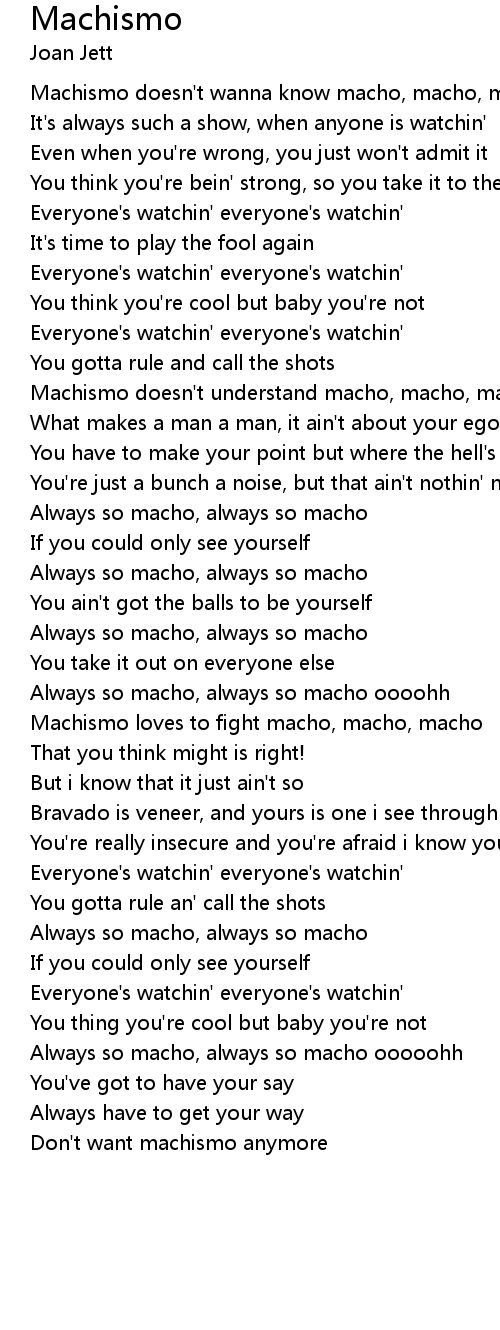 | Machismo doesn' t wanna know macho, macho, macho | |