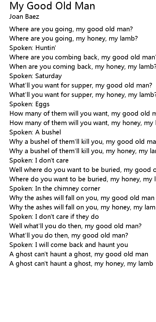 Where are you going, my good old man? |