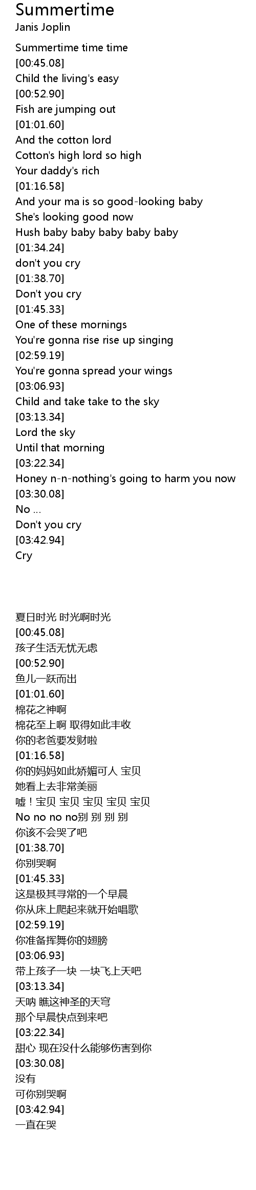 | [01:29.18] | Hush baby baby baby baby baby |