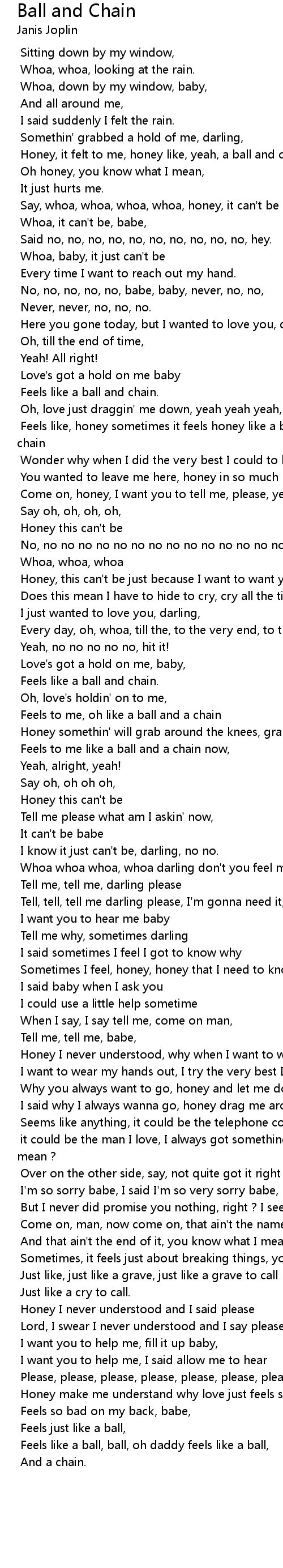 Feels like, honey sometimes it feels honey like a ball, yeah like a ball and a chain