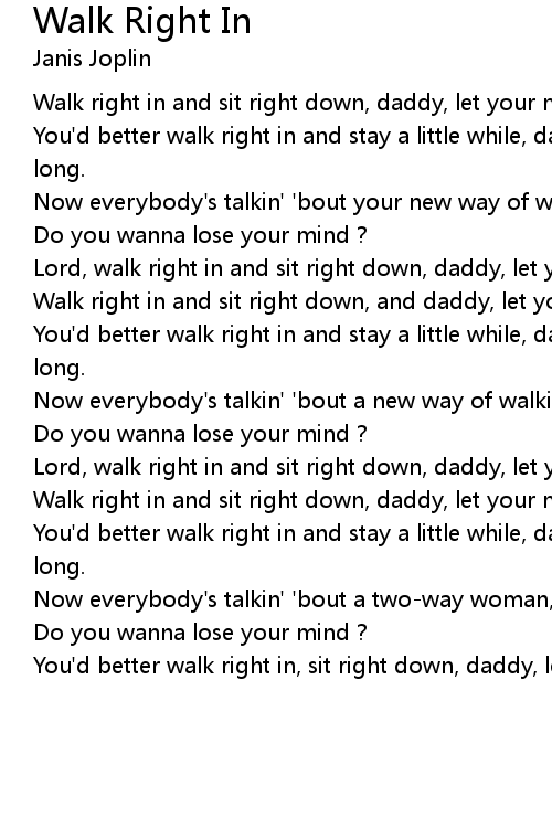You'd better walk right in and stay a little while, daddy, you can't stay too long. |