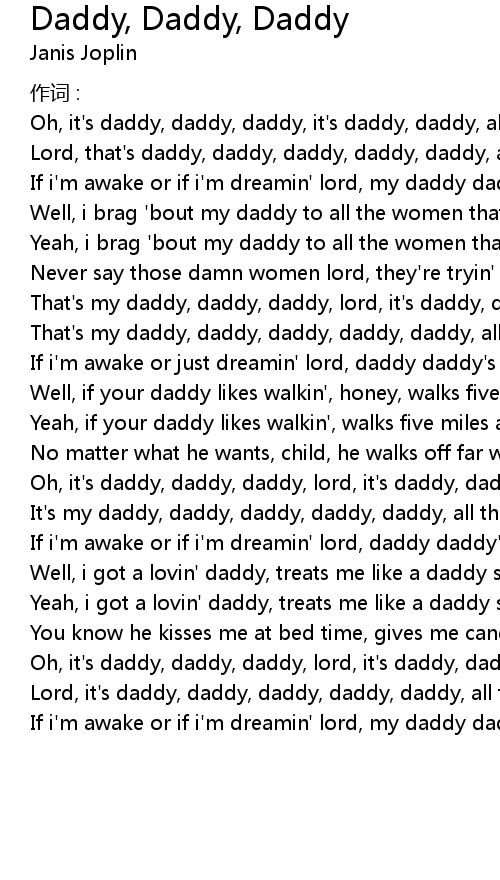 | Oh, it' s daddy, daddy, daddy, lord, it' s daddy, daddy, all the time. | |