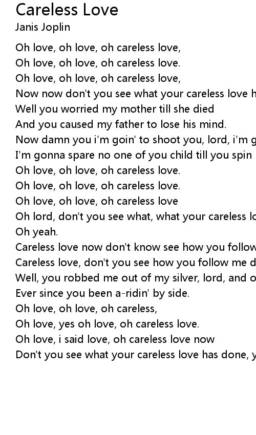 Oh love, yes oh love, oh careless love. |