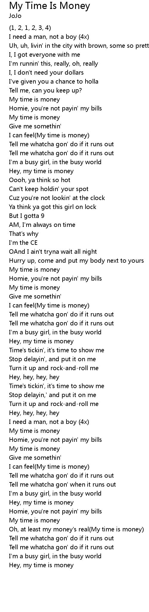 Oh, at least my money's real(My time is money) |
