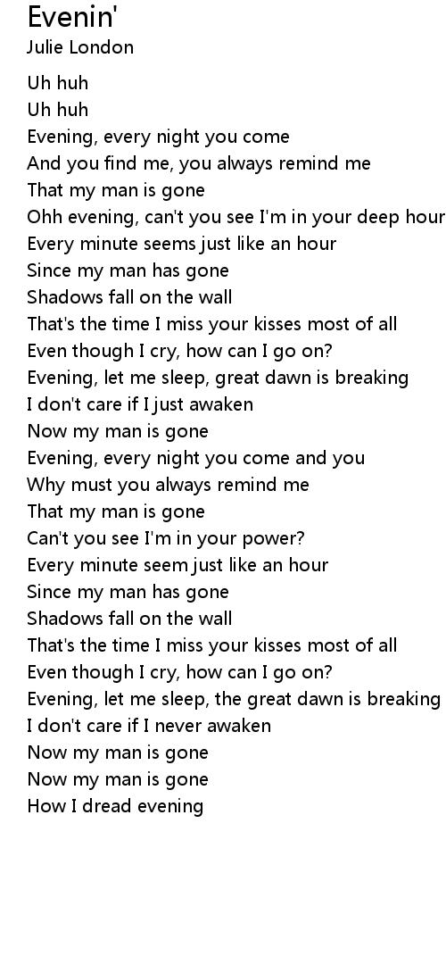 Evening, every night you come |