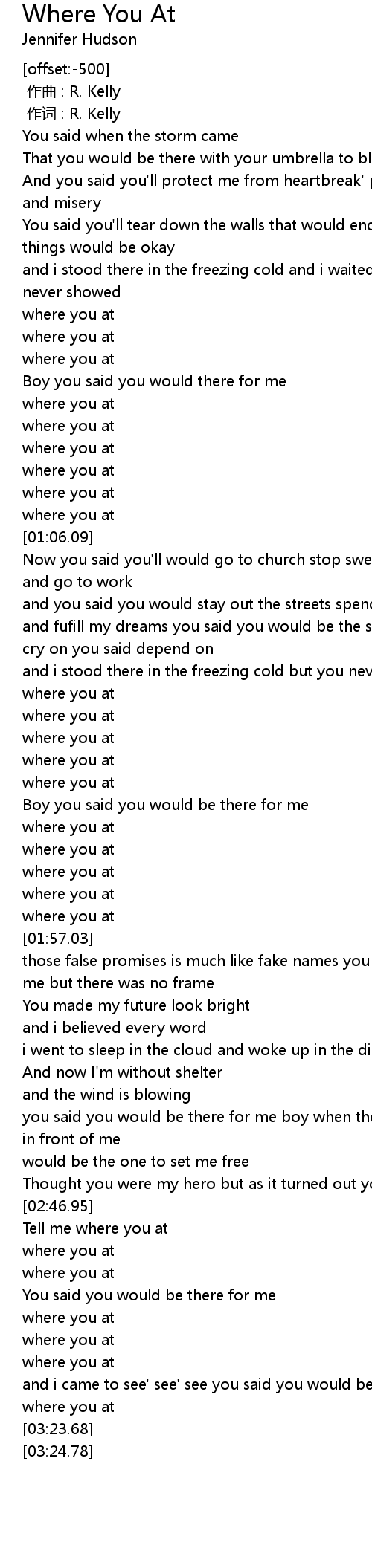 | [00:00.00] | 作曲 : R. Kelly |