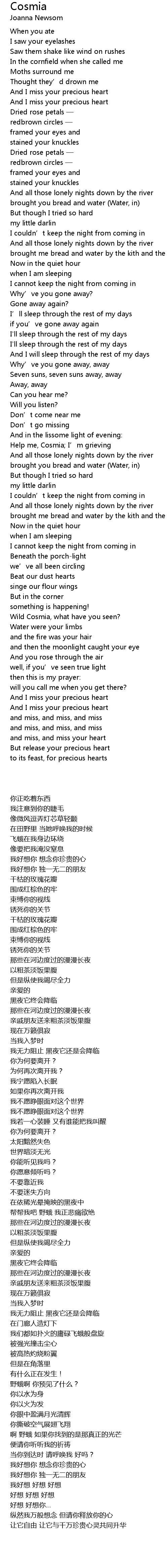 | [05:23.897] | Wild Cosmia, what have you seen? |