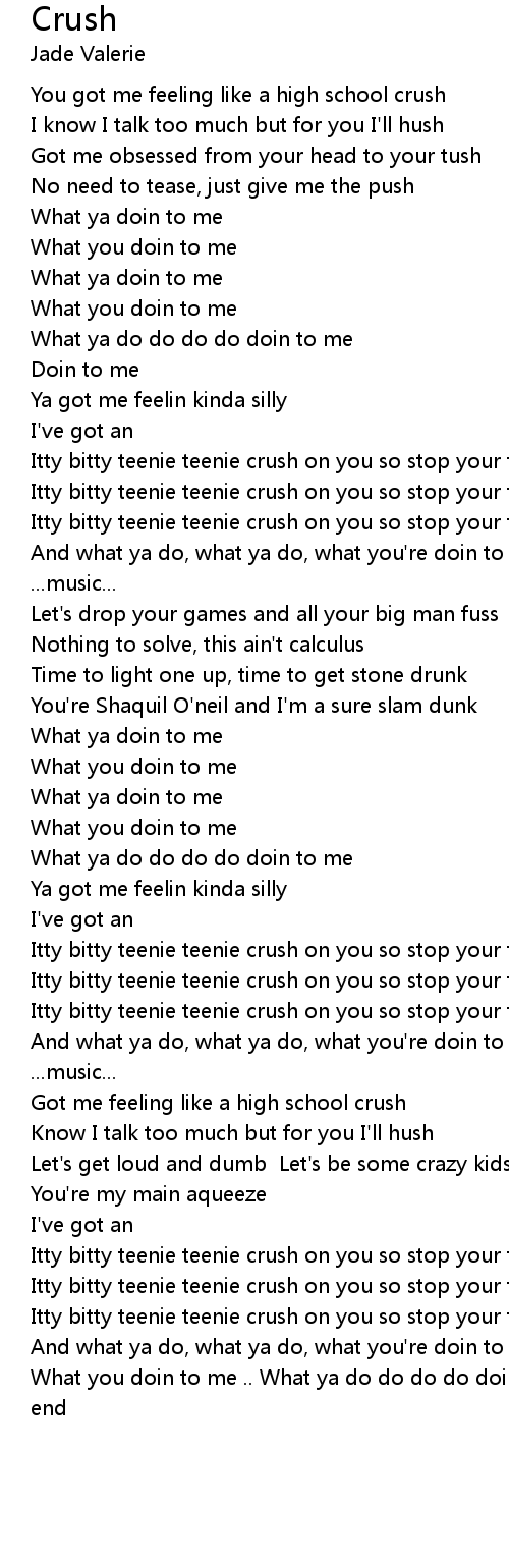 Itty bitty teenie teenie crush on you so stop your teasin' |