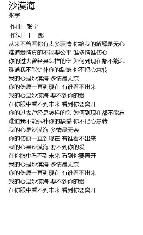 | [01:16.000] | 我的心是沙漠海 要不到你的爱 |