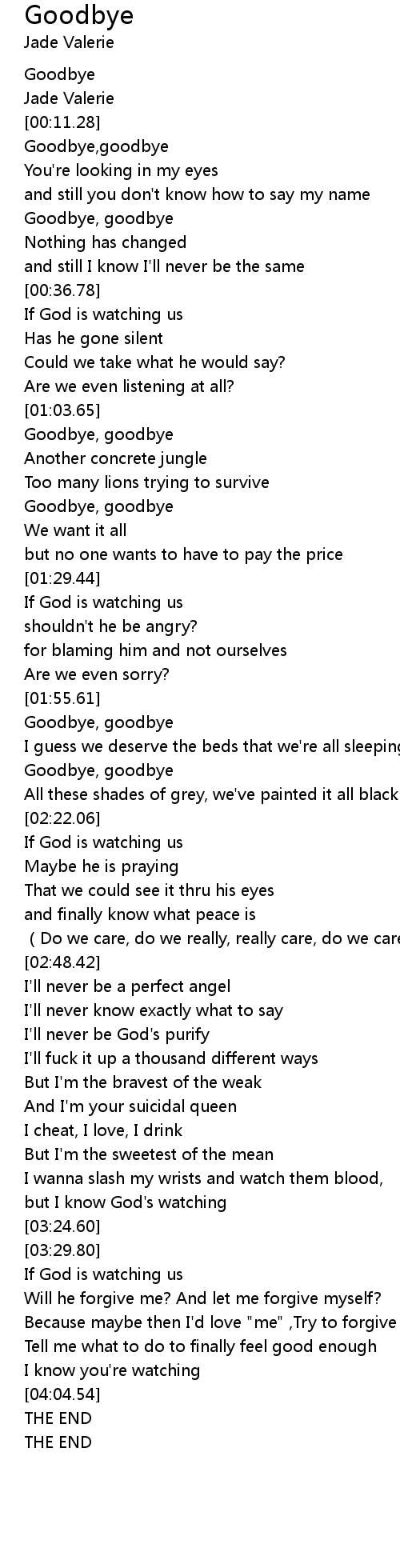 | [00:03.51] | Goodbye |