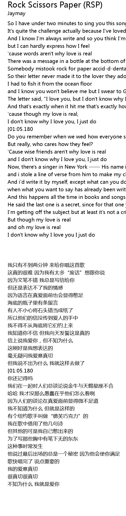| 歌曲 | Rock Scissors Paper (RSP) |