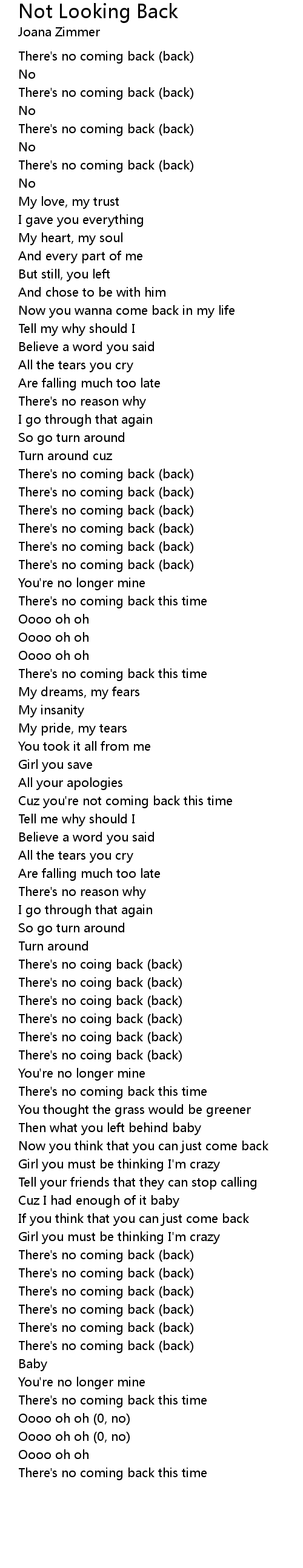 There's no coing back (back) |