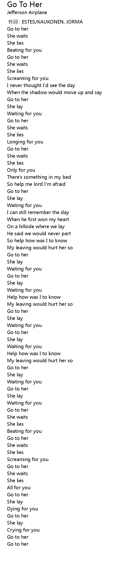 | [00:00.00] | 作词 : ESTES/KAUKONEN, JORMA |