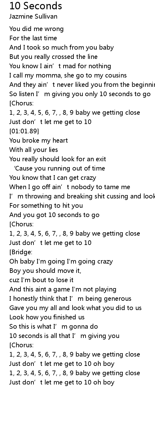 | [00:59.40] | Just don’t let me get to 10 |