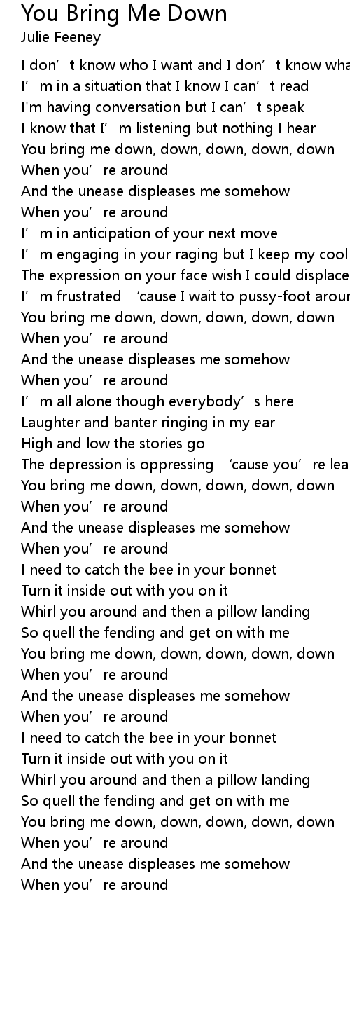 | You bring me down, down, down, down, down | |