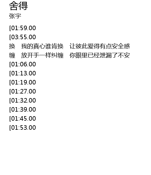 | [03:42.00][01:59.00][00:15.00] | nán ài yǔ bù ài dōu hěn nán pà zhǐ shèng yī zhǒng gǎn jué jiào yí hàn |