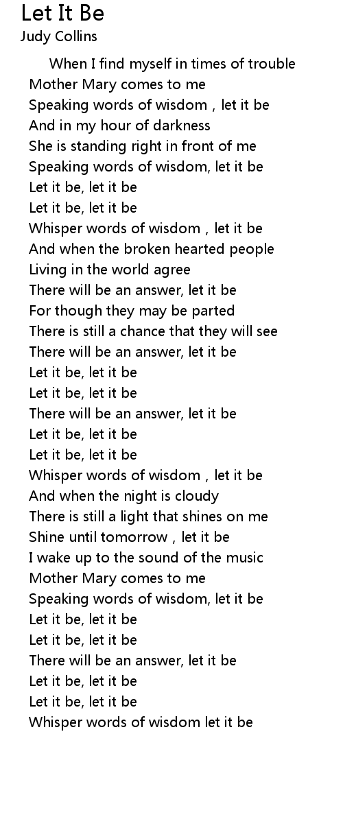 | [00:50.720] | Whisper words of wisdom,let it be |