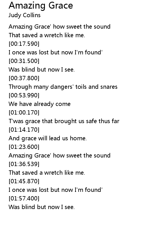 | [01:26.600] | Amazing Grace' how sweet the sound |