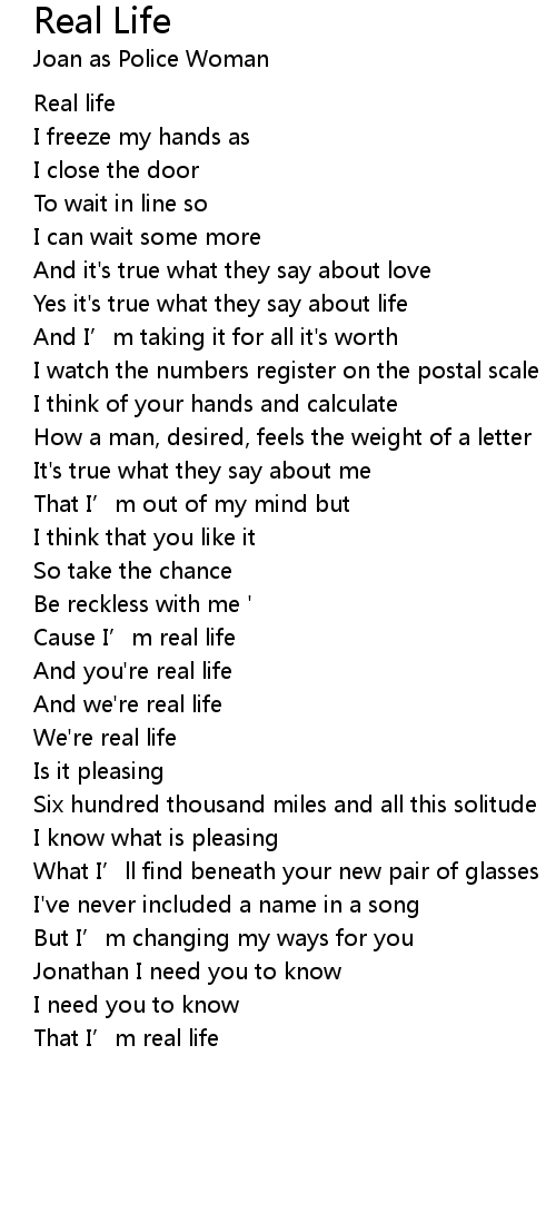 | Cause I' m real life | |