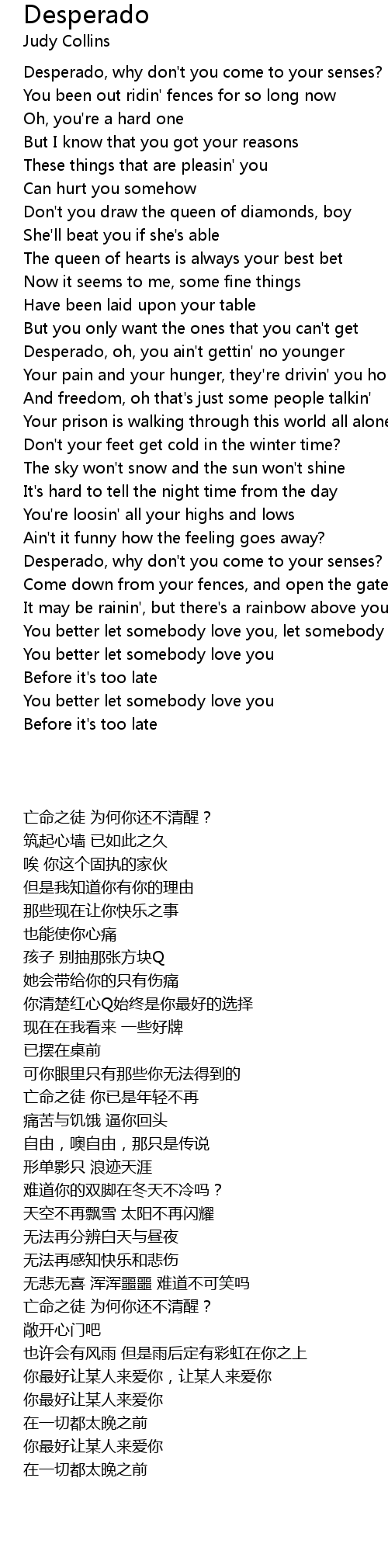 Desperado, why don't you come to your senses? |