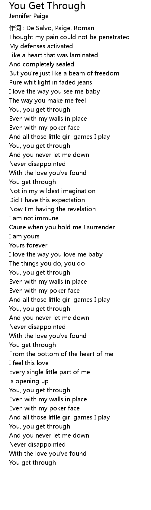 | 歌曲 | You Get Through |