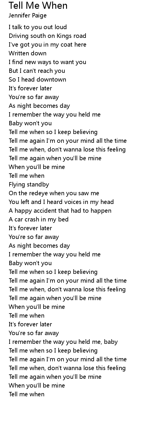 Tell me when so I keep believing |