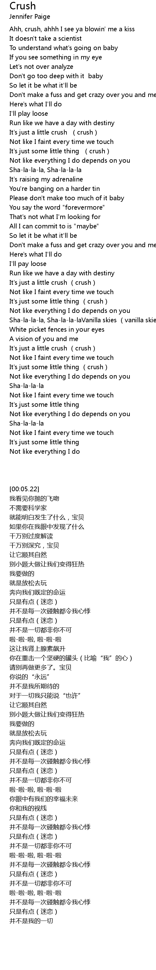 | [00:09.34] | Ahh, crush, ahhh I see ya blowin' me a kiss |